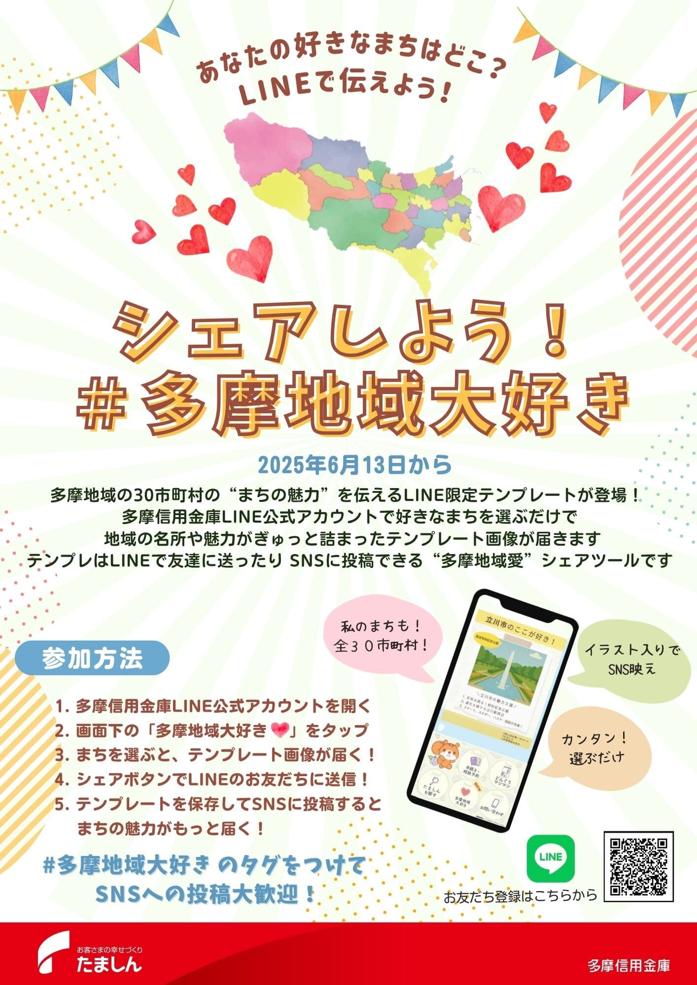 「シェアしよう! #多摩地域大好き」は、スマホひとつで誰でも気軽に参加できる、地域応援の新しいカタチです。2025年6月13日(金)からスタート!